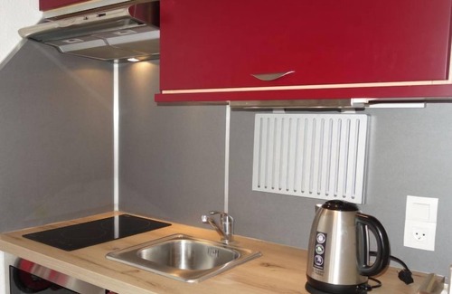 1-room studio 21 m2 on 2nd floor. Object suitable for 2 adults + 1 child. Entrance hall with 1 bed (80 cm, length 190 cm). Living/dining room with 1 double sofabed (140 cm, length 190 cm), TV (flat screen), DVD. Exit to the balcony. Kitchenette (3 hot plates, oven, microwave) with bar. Bath/shower/WC. Electric heating. Small balcony 3 m2, south-west facing position. View of the mountains. Facilities: Internet (WiFi, free). Please note: non-smokers only. TV only FR. No lift. Access to the building by external staircase – not suitable for people with reduced mobility and strollers.