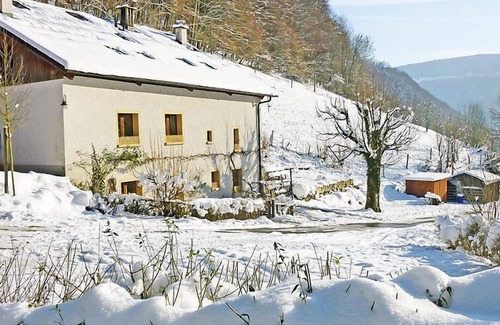 La Combe 11 km from St. Ursanne: Child friendly farmhouse "Gite la Combe", surrounded by trees and meadows. Outside the resort, 11 km from the centre of St. Ursanne, in a secluded, quiet position, along the wooded area, 10 m from the stream, in a cul-de-sac. For shared use: natural state property 2'000 m2, meadow 4'000 m2. Barbecue. In the house: central heating system. In Winter: please take snow chains. Supermarket 8 km, restaurant 8 km, bus stop 2 km, railway station "St. Ursanne" 12 km. Walking paths from the house 10 m, cross country ski track 10 km. Nearby attractions: Préhistoparc 17 km, Grottes de Réclère 17 m, Musée de machines acricoles, Cite Mediaval, St. Ursanne 11 km, Sochaux (FR) Musée Peugoet 54 km. Please note: car recommended. Animals in the neighbourhood. canoe rental and other sporting activities nearby. This house is located close to the Doux. Ideal for river-bathing, beautiful walks and bike rides throughout the region. All consumables are not provided toilet and bath products, toilet paper, dish soap and dishwasher tablets, fondue fuel pellet stove.