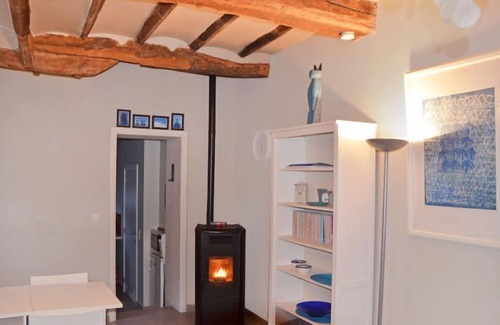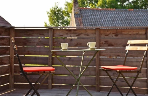 "Le Ti' Bauduin", 2-room maisonette 40 m2. With sloping ceilings, practical furnishings: living/dining room with open-hearth fireplace, dining nook, digital TV, international TV channels, flat screen and hi-fi system. Kitchen (4 ceramic glass hob hotplates, toaster, kettle, electric coffee machine, combination microwave). Shower, sep. WC. Wood heating. Upper floor: 1 open large room with sloping ceilings with 1 french bed (1 x 160 cm, length 200 cm). Exit to the terrace. Terrace. Terrace furniture, barbecue. Facilities: hair dryer. Internet (WiFi, extra). Please note: smoke alarm.