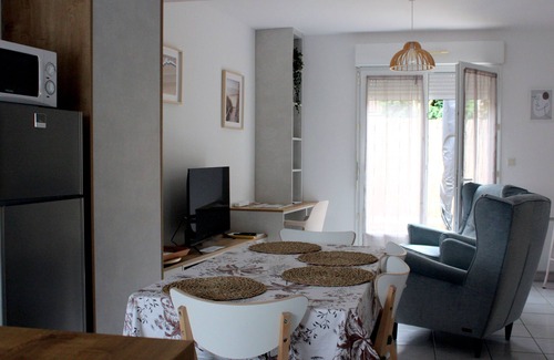 Located in a quiet residential area close to all amenities and major roads, the accommodation is ideal for your business trips, family reunions or simply visiting our region. Parking, terrace and Wifi are at your disposal to make your stay more pleasant. Charming 53 m2 air-conditioned house that can accommodate up to 4 travellers, consisting of a living room with kitchen and dining room, 2 bedrooms, one of which can be used as a lounge, it is ideal for teleworking or holidays.
