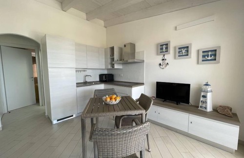 "Le verande Bilo con Piscina", 2-room apartment 35 m2, on the upper floor. Beautiful and modern furnishings: open living/dining room with 1 sofabed, satellite TV and flat screen. Exit to the veranda. 1 double bedroom. Kitchen (4 hot plates, freezer). Shower/bidet/WC. No heating option. Terrace furniture. Very beautiful view of the sea. Facilities: washing machine. Suitable for families. Maximum 1 pet/ dog allowed. IT090074C2000T0501