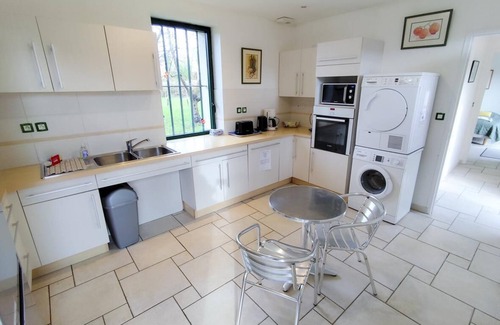 Close to fishing, hiking trails, and more, this smoke-free vacation home brings it all within reach. Thanks to the convenient covered onsite parking, you can either leave your vehicle behind and enjoy a short 5-minute walk to Boucles de la Seine Natural Regional Park, or easily tackle the quick 3-minute drive to Seine.