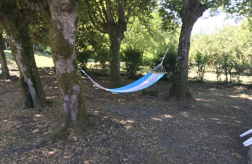 A wooden chalet with a terrace and a green space in a quiet site on 3 hectares of meadows and woods with swimming pool, playground, orchards, animals. Close to the sites of the Dordogne, Rivers, shops and leisure activities.