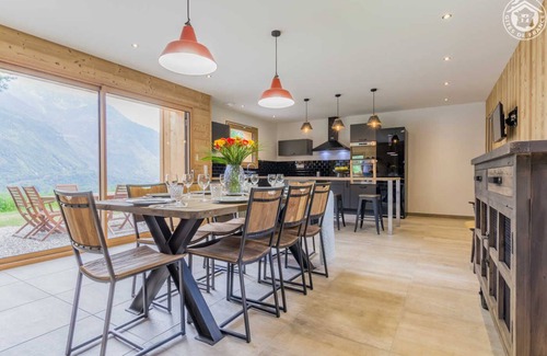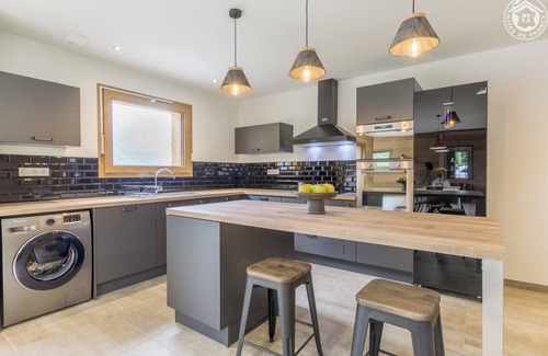 Independent house. Ground floor: very large living room-dining room with fully equipped kitchen and quality equipment. 1 bedroom (1 double bed 160x200cm) with private bathroom (walk-in shower). Independent WC. Upstairs: 2 bedrooms (1 bedroom with 1 double bed 160x200cm with private terrace in the bedroom / 1 bedroom with 3 single beds 90x200cm). Bathroom (bath). Separate WC. Sauna. Lawn bowling. Parking on the property. Terrace with garden furniture and barbecue. SPA (optional charge - contact the owner). Sheets included + beds made on arrival. Bathroom linen included. Including charges. Superb villa of contemporary architecture harmoniously uniting stone and wood for a resolutely cocooning nature spirit! Beautiful volumes and neat decoration thanks to unique objects found in France and abroad. Very good comfort and a lot of charm for this cottage nestled in lush greenery with a view of the valley. Immediate proximity to the lake of Saint Alban d'Hurtières (supervised swimming in season) less than 1km away. Pleasant terrace. Sauna for 4 to 6 people in a vaulted outbuilding.
