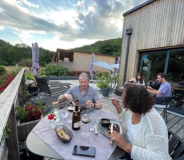 Le Volcan des Sens, chambres d'hotes de luxe et SPA privatif in Torsiac provides adults-only accommodations with an open-air bath and massage services. The bed and breakfast features a spa experience, with its hot tub, spa facilities, and wellness packages. There's a picnic area and guests can make use of free Wifi, free private parking, and an electric vehicle charging station. The bed and breakfast will provide guests with air-conditioned units offering a desk, a coffee machine, a minibar, a safety deposit box, a flat-screen TV, a terrace, and a private bathroom with a walk-in shower. A balcony with an outdoor dining area and mountain views is offered in every unit. At the bed and breakfast, units include bed linen and towels. Buffet and continental breakfast options with pancakes, fruit, and juice are available. There is an on-site romantic restaurant, coffee shop, and bar. Guests at the bed and breakfast will be able to enjoy activities in and around Torsiac, like hiking and walking tours. Guests can swim in the pool with a view, relax in the garden, or go skiing or cycling. Clermont-Ferrand Auvergne Airport is 42 miles from the property.