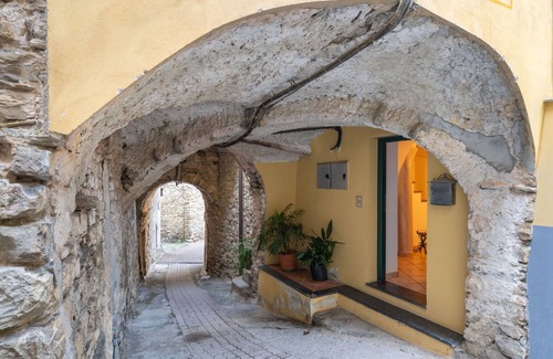 Beautiful, rustic 2-family house "Le Volte & Terrazzo". In the centre Pietrabruna, 10 km from the centre of San Lorenzo al Mare, 15 km from the centre of Imperia, traffic calmed area, 9.5 km from the sea. 100 m steep footpath to the house. Public parking 100 m. Shop 200 m, supermarket 10 km, restaurant 2 km, bus stop 100 m, sandy beach "San Lorenzo al Mare" 10 km, indoor swimming pool 15 km. Part of the house is closed and unoccupied.
