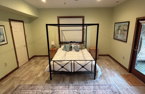 Escape to Merlin Creek, a hidden sanctuary tucked into the rolling woods of Chester County, Pennsylvania, only 12 minutes from historic downtown Phoenixville. Designed for travelers seeking both comfort and connection to nature, this private first-floor suite offers everything you need for a restorative getaway in every season — but it truly shines in October, when fall foliage sets the landscape ablaze with red, gold, and amber hues.