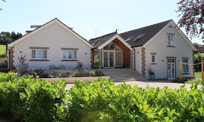 - The Lodge, South Cotswolds, contemporary rural home, Spa Pool, views, parking