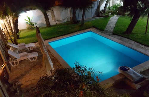 independent seaside villa with private pool, in a quiet location just 10 meters from the sea, two bedrooms with four beds bed, The pool is circondatanto from grass can be used sunbeds that are available. Shower and bathroom outside in a shady wooden gazebo for outdoor dining. TWO provide for pizzeriamaurix one small and one large. The villa has a beautiful lighting.