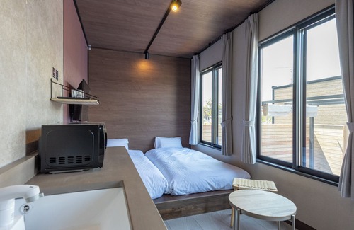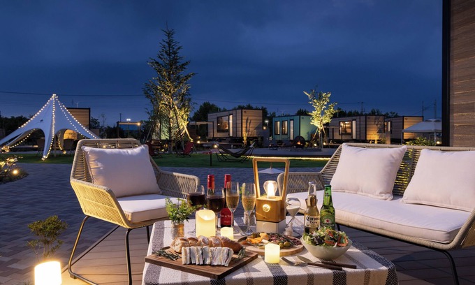 - The Camping Yard Higashi Matsuyama" - BBQ, campfires, and tents available for overnight stays.