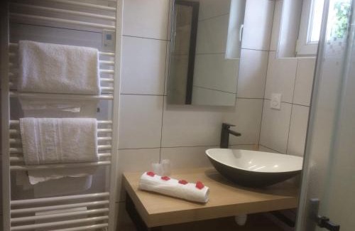 Featuring a garden, L’Edaines features accommodations in Bagnoles de l'Orne. This property offers access to a terrace and free private parking. Guests can use the spa and wellness center with a sauna and hot tub, as well as a casino. This air-conditioned 1-bedroom villa comes with a seating area, a flat-screen TV, a Blu-ray player, and a fully equipped kitchen with an oven. Towels and bed linen are offered in the villa. For added privacy, the accommodation has a private entrance and soundproofing. Halle au Blé is 30 miles from the villa, while Bagnoles-de-l'Orne Golf Course is 4.5 miles from the property. The nearest airport is Caen–Carpiquet Airport, 54 miles from L’Edaines.