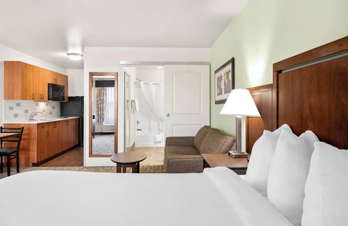 Ledgestone Suites Hotel Elko offers 84 air-conditioned accommodations with safes and coffee/tea makers. Beds feature premium bedding. Kitchens or kitchenettes offer full-sized refrigerators/freezers, stovetops, microwaves, and cookware/dishes/utensils. Bathrooms include shower/tub combinations and complimentary toiletries.