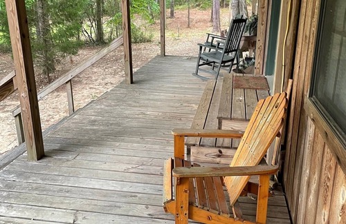 The Ledo Hideaway is a custom built cozy cabin tucked away in large trees to provide the ultimate privacy on all 3 sides. The 4th side is a beautiful view that contains cypress trees and knees that frame the mesmerizing sunsets that Toledo Bend is well known for. There's a pier that leads out to the lake where boats can be tied up and a private boat launch with the Sabine Civic Club just one block over. This cabin also offers an outdoor cooking area with a sink for cleaning the catch of the day.