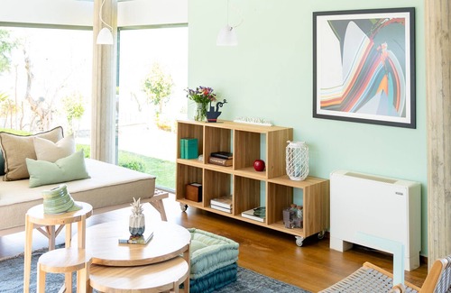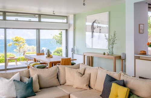 Airy and bright, this seaside Villa of unique architecture is a destination by itself. Fully renovated, with Cocomat beds, matresses and furniture, it combines elegance and comfort. The fact that it is built right on the seashore and the glass walls, give you the feeling of sailing, day and night.