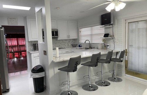 Relax with the whole family at this peaceful place to stay. This newly remodeled, spacious 4-bedroom home is surrounded by stunning views of a private lake. This hidden jewel comfortably sleeps 10 with a max of 14. It will take your breath away. It caters to any small event, like family gatherings, retreats, fishing and other activities that will make your stay a grand one. Book your stay today and experience the motto to relax, reflect, and recharge. (Parties or other small gatherings requires an additional fee of $400. Please inquire with host).
