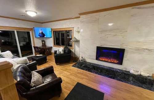 Escape to this tranquil waterfront 3-bedroom Eau Claire retreat. Unwind in the beautiful surroundings of this house, featuring 1 king bed and 2 queen beds. With WiFi, AC, and heating, guests can relax in comfort. We hope you'll enjoy your stay at our house.