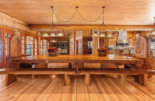 Nestled deep in Sitgreaves National Forest, this 20k sq ft luxury lodge and neighboring barn offer the perfect blend of comfort, seclusion, and adventure, built for epic family reunions, destination weddings, corporate retreats, and youth camps. The property includes access to a fenced-in pond with a dock and rope swing. (There is an event fee for weddings and corporate retreats.) Excellent internet but the the lodge is off-grid, powered by solar energy and cell service is spotty.