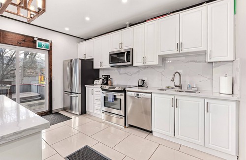This chalet is located at Tyrolean Village, a 12-15 minutes walk to the Village at Blue Mountain, a 2-minute drive to the main parking lots, a 5 minutes drive to Northwind beach in George Bay and a 7-8 minutes drive to the Scandinave SPA. This area of Tyrolean Lane is all rental chalets making for a lively and fun atmosphere on the weekends but is generally quiet during the week.