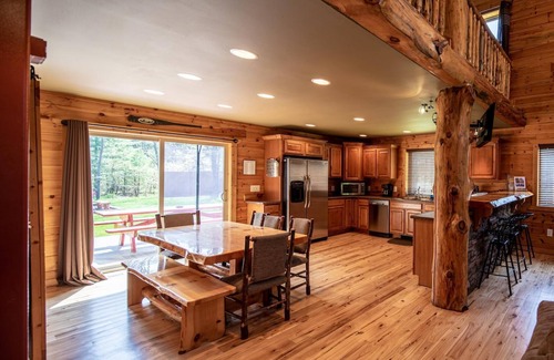 Welcome to Moose Lodge. Savor the privacy and serene setting of this amazing 5 bedroom custom home. Moose Lodge is nestled on 5.5 beautifully wooded acres with miles of nearby trails and wildlife galore. Just 5 minutes north of Wisconsin Dells, our north woods rustic home will be the perfect setting for your family vacation or gathering. We do have country neighbors at our home. Family noise is perfectly acceptable, but we cannot host any loud groups. Loud music is not allowed at any time. If you have a concern about this, please just ask- I am happy to discuss!