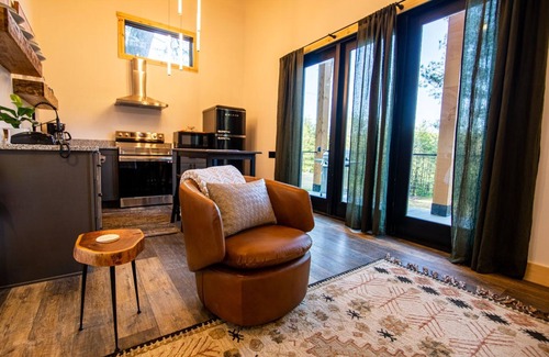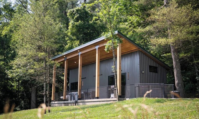 New in 2023, five modern mountain chalets tucked into a hillside with wooded views from walls of windows in the vaulted living and sleeping areas. Sleek efficient design and indulgently luxe finishes reminiscent of your favorite vacation posts, make Legends Lane the latest and greatest place to shack up in the Hocking Hills. With a seasonal gas fireplace, fire ring, hot tub, and shower built-for-two, you may never want to leave. SaunaPods and the Chalets seasonal resort pool are located on the same campus, which is a couple miles up the road from the epicenter of the region's natural amenities: the Hocking Hills State Park Visitors Center. Queen bed. One bath. High-speed internet. Pet friendly (limit two; $50+tax pet cleaning fee; no dobermans, pit bulls or rottweilers.)
