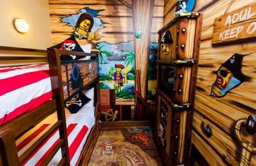 LEGOLAND® Florida Resort offers three themed accommodations options: the LEGOLAND® Florida Hotel, located 130 steps from the LEGOLAND® Florida theme park entrance, and the LEGOLAND® Beach Retreat, with beach-themed, village-style bungalows located on nearby Lake Dexter. Full hot breakfast is included in rate for all hotel guests. Self-parking and Valet parking are available for a fee, while WIFI is part of the resort fee. Scheduled shuttle from LEGOLAND Beach Retreat is provided to and from LEGOLAND ® Florida. The LEGOLAND® Pirate Island Hotel offers pirate-themed rooms that feature an in-room treasure hunt with LEGO® prizes and a separate children’s sleeping area. Rooms at the hotel are pirate, kingdom, or adventure-themed. The hotel features a zero-entry heated outdoor pool. A castle play area with a pirate ship and LEGO®-filled moat is included, as well. Also located at the hotel is the Skyline Lounge, which features a LEGO® skyline and over 20 LEGO®-themed scenes. A children’s Master Model Builder Session is included with every stay at the LEGOLAND® Hotel. The LEGOLAND® Pirate Island Hotel offers pirate-themed rooms that feature an in-room treasure hunt with LEGO® prizes and a separate children’s sleeping area. The hotel features a family-style Shipwreck Restaurant, a resort-style pool, nightly kid's entertainment and free LEGO Master Model Builder workshops. The LEGOLAND® Beach Retreat features beach-themed guest rooms in a village-style beach bungalow setting. The property offers a zero-entry heated outdoor pool. Guests can purchase snacks and drinks at Bricks Beach Bar. Historic Bok Tower Gardens is 11 mi from the hotel, while Eagle Ridge Mall is a 12 minutes’ drive away. Davidson of Dundee candy factory is 6.8 mi from the property. Orlando International Airport is 38 mi away.
