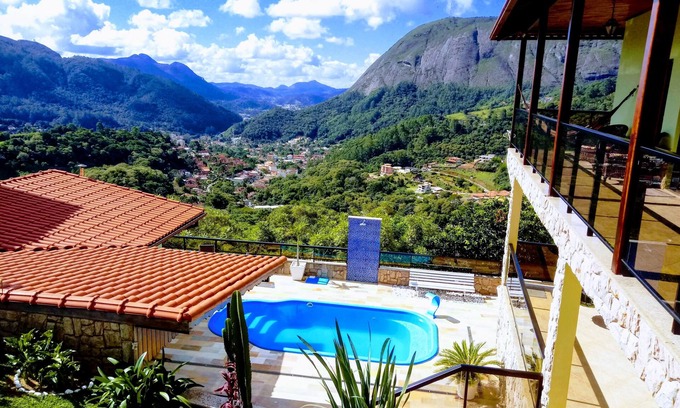 Casa com Lazer, the property with an outdoor pool, is located in Nova Friburgo, 6 km from Eduardo Guinle Stadium - Friburguense AC, 7 km from Country Club Nova Friburgo and 7 km from Central Park. This holiday home features a private pool, garden, barbecue, free Wi-Fi and free private parking.
