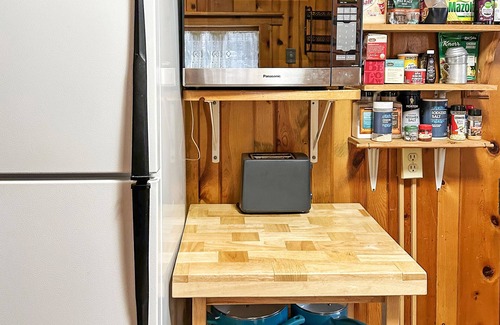 We have a gas grill just outside of our back kitchen door during the summer season, available for your use. We share a picnic table with Cabin 3 (the table is located between our cabins). Cabin 3 rarely uses it, but please note that it is shared space.