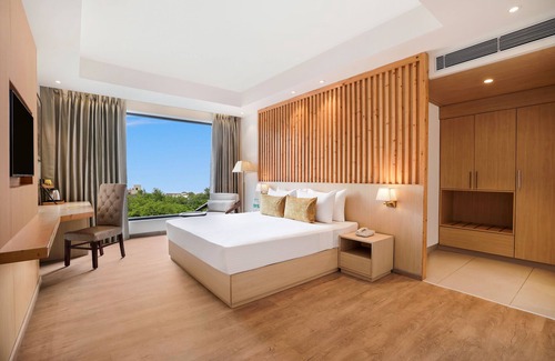 Best-rates for the Lemon Tree Hotel Haridwar starts from $60 per night with includes Air Conditioner, Parking, Accessibility, Toiletries, Guest Services, Child Friendly, Internet, Laundry, Wheelchair Accessible, Wellness Facilities, Restaurant, Kitchen with all other amenities. Perfect for Weddings is committed to ensuring every guest experiences a comfortable and extraordinary stay, whether planning a romantic getaway, a honeymoon, a pet-friendly stay, or celebrating with the entire wedding party.