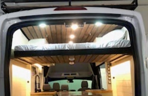 Hi I'm Leroy! I am a 2015 Ford Transit ECO-Boost. My owners recently had me fully renovated to be the epitome of modern style and comfort. I come fully equipped to seat and sleep a 4 person family with my 2 full-sized beds. I have a gas stove, electric fridge/freezer, portable propane heater, 15 gallon water supply, and 6 gallon road shower. My kitchen comes fully stocked with cookware and cleaning supplies. I also have a custom roof rack, which can fit an additional pop-up tent, paddle boards, bikes, or anything else you wish to bring on your adventure. For your privacy all windows are limousine tinted and come with black-out curtains. My owners take pride in your comfort and safety!
