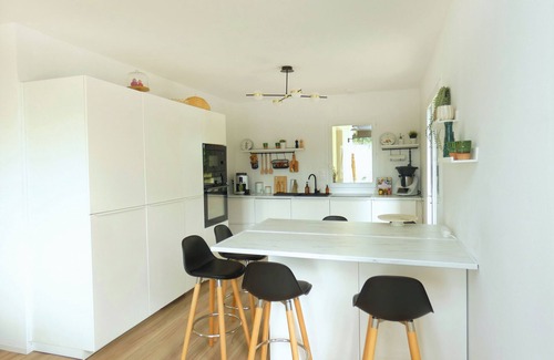 Looking for a getaway in a family home in the heart of a protected environment on the shores of Lake Paladru and its crystal-clear waters? LES 3 CÈDRES is just waiting for you. Sheltered at the end of a cul-de-sac, this tastefully renovated 160 m2 house offers a magnificent setting with an uninterrupted view over the lake.