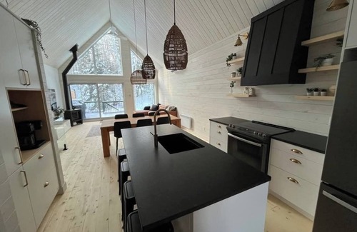 Les 3 versants - Scandinavian chalet, new construction at Mont-Édouard is located in L'Anse-Saint-Jean. Les 3 versants - Scandinavian chalet, new construction at Mont-Édouard provides accommodation, featuring Laundry, Parking, TV, among other amenities. This Ski Chalet features Laundry, Parking, TV, to make your stay a comfortable one.