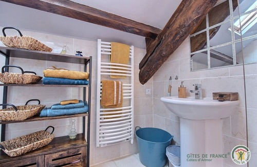 Your vacation rental includes: On the ground floor : An entrance hall, living room (fireplace with electric fireplace), fitted kitchen. Upstairs : A landing serving 2 bedrooms: The Saphir room with 1 150x190 bed And the Black Pearl room with 2 90x200 beds, adjustable according to your choice of 180x200 bed, Shower room with walk-in shower and toilet. Gravelled courtyard of 50 m² on the front and small terrace of 20 m² on the back. Gîte adjoining another house. Teleworking space in the living room. A welcome basket with Breton specialties and a dinner will be offered to you on your arrival. No electric charging for vehicles possible, terminal 500 meters away. In the small hamlet of La Touche, 1.5 km from the village of Plumaudan (supermarket, bakery, cracker factory, medical centre, pharmacy...), this typical little country house will seduce you with its interior layout distinguished by its large exposed beams and beautiful solid parquet floors. Muriel, the owner has invested a lot in revamping the furniture, refining the decoration down to the smallest detail so that you feel like in a cocoon... 2 small outdoor spaces are at your disposal: you will choose according to the 'sunshine. Want to discover the region? Start by going to Dinan, a pretty city of character with its historic center and its marina (14 km). 10.5 km from the Bétineuc pond and its leisure centre, ideal for families looking for sports activities (supervised swimming, sailing, canoeing, mini-golf, fishing...). 25 km from the Golf of Tremereuc. 33 km from the beaches of Lancieux, 40 km from St-Malo.