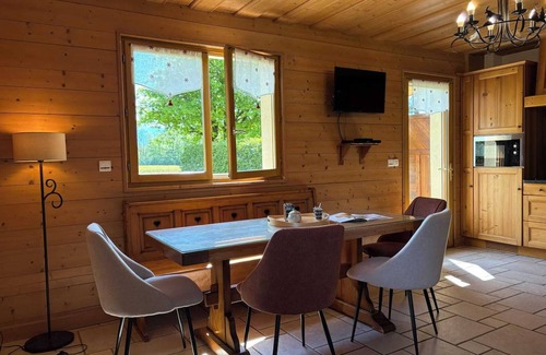 Ideal for a break and relax, this cottage is located in the residence amaryllis, (gitebalneo.com) contemporary house with 2 cottages and the home of the owners. This cottage of 54m2 is decorated in the fashion of mountains, you will be filled by the indoor pool heated to 34 °, equipped with hydromassage jets, a swim against the current, and a jacuzzi overlooking a wooden deck facing south. Guests also have access to a gym and table tennis. At disposal: baby equipment (bed, high chair, deckchair, changing mat, bathtub, barrier, intercom); outdoor games for older children, DVD, ski storage, barbecue. Panoramic view of the surrounding mountains: marcelly peak, buet, scream. Summer and winter, a multitude of activities are offered.