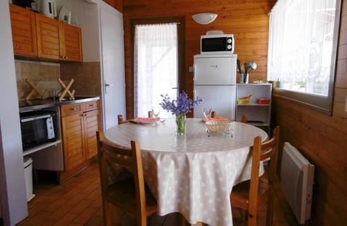 Domaine de l'Étang welcomes you for a fun family vacation. Just for you: pétanque, a bike ride in the forest... Enjoy good humor and relaxation in the heart of the Landes de Gascogne Regional Natural Park. These wooden chalets allow you to unwind and spend quality time with your whole family in a comfortable setting. For a nature stay, this is the place! A small village with 12 cottages. The cottage comprises: a living room with kitchenette, bathroom with walk-in shower, 1 bedroom (1 double bed with pillow and blanket), separate toilet, 1 convertible sofa bed (140 cm) in the living room. Amenities: Microwave, mini-oven, 2-burner induction hob, refrigerator/freezer, kettle, coffee maker, toaster, flat-screen TV, clothes horse, shared washing machine and dryer. On request: ironing equipment - plancha. Electric heating included from November 1 to May 1. If used outside of November 1 to May 1, an additional charge will be applied (€6 per day). For short stays of 3 nights or less, disposable sheets are available for rental. For all other stays, fabric sheets are available for rental. End-of-stay cleaning fee available upon request. Baby crib, booster seat, and bathtub available upon request. Covered terrace Garden furniture. Unfenced grounds shared by all tenants. Parking. Free public Wi-Fi. On-site activities include: bowling alley, pelota court, volleyball, table tennis, orienteering sports area, labyrinth, eco-walk, tennis, intergenerational playground, and mountain biking. (The pond is not suitable for activities.) For more than one animal, please contact us.