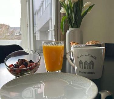 Les Baigneuses Saint Brieuc centre avec parking offers accommodations in Saint-Brieuc, 10 miles from Crinière Golf Club and 15 miles from Ajoncs-d'Or Golf Course. This apartment provides free private parking, a concierge service, and free Wifi. Outdoor seating is also available at the apartment. Providing a balcony and inner courtyard views, the spacious apartment includes 2 bedrooms, a living room, cable flat-screen TV, an equipped kitchen, and 1 bathroom with a shower. Towels and bed linen are provided in the apartment. This apartment is allergy-free and non-smoking. A selection of options including local specialities, fresh pastries, and fruit are served for the continental breakfast. As an added convenience, Les Baigneuses Saint Brieuc centre avec parking offers packed lunches for guests to bring on excursions and other trips off-property. Popular points of interest near the accommodation include Saint-Brieuc Museum of Art and History, Saint Brieuc Cathedral, and Saint-Brieuc Train Station.