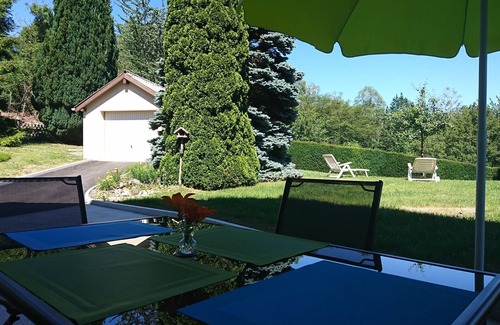 The apartment rated 3 stars located at 650m altitude in our villa. Its location is very quiet. The type F2 apartment with 72m² is located on the ground floor. The garden is meanwhile facing south with a panoramic view, it is fully raised on a 3700m2 surface. The proximity of the main cross-country or alpine resorts, hiking trails (very well marked by the club Vosges), snowshoeing or mountain biking, paragliding site, Lake Kruth with park from tree to tree, gives our apartment a situation privileged. The pool in the village 2 minutes from our accommodation is open all year. The apartment consists of a bedroom with electric bed 1.60m, a fully equipped kitchen, a living room with sofa for 2 people, a bathroom and a pantry or local Storage. It is fully equipped, bed linen and towels are provided, cleaning is done by us. You can also enjoy the sunrise for breakfast, either in the kitchen or in our beautiful garden where you can enjoy the view of the valley and surrounding mountains. CHEQUES VAVANCE (ANCV) ACCEPTED