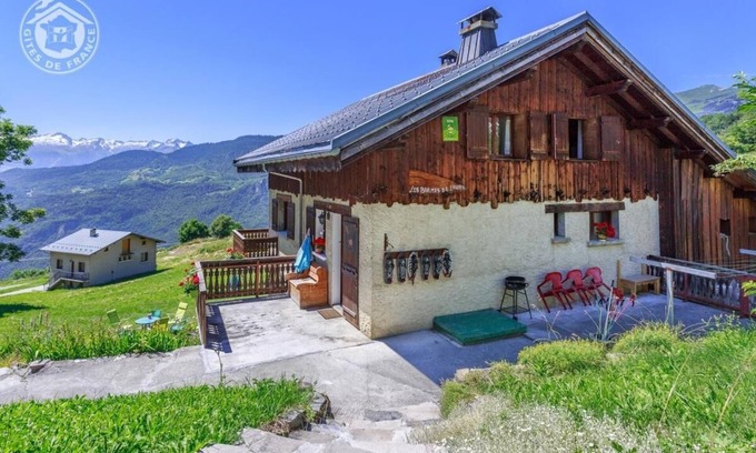 Gite in the owner's House. Elevated ground floor + 1st FLR. : living room, kitchen, 4 bedrooms (3 double beds p 6 beds 1 p.), s. (bath), s. water (shower), s. - common laundry. Balcony + terraces. Land. Our Lady of the Meadow (3 lifts), Montalbert ski / the Plagne 7 km (preferential rates). Baths Salins les Thermes. Waterbody 14km. Country house located in the heart of a small village. On a southern exposed plateau, on the edge of meadows and forests. Sector quiet. Gite very good comfort. Spacious and bright. Very nice outdoor space landscaped with 2 terraces. Panoramic views of the mountains.