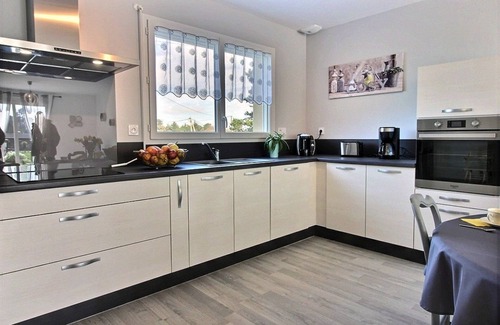 A single-storey gite. Lounge-diner with open-plan kitchen. Bedroom 1: twin beds. Bedroom 2: double bed. Shower room with WC. Baby equipment. Patio, and private enclosed garden (500m²). A modern, tastefully-appointed house just 500m from the family-friendly beach of St Pabu, perfect for a relaxing holiday. For something more energetic, there are lots of footpaths nearby or why not try paragliding above the beach 300m away (ask the owners for more information). The delightful seaside resort of Pléneuf Val André is 3.5km with its numerous beaches, long breakwater, casino and thalassotherapy centre. Erquy is 9km and Cap Fréhel 14km.