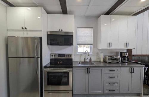 Located just 30 miles from La Cite de l'Energie, Les Chalets Double K # 3 provides accommodations in Saint-Alexis-des-Monts with water sports facilities, a spa & wellness center, as well as a shared kitchen. The air-conditioned property is 8.5 miles from Sacacomie Lake, and guests benefit from on-site private parking and complimentary WiFi. Providing a terrace with mountain views, this lodge also has a cable flat-screen TV, a well-equipped kitchen with a fridge, an oven and a microwave, as well as a bathroom with a shower and a hairdryer. The lodge offers a hot tub. After a day of skiing, fishing or canoeing, guests can relax in the garden or in the shared lounge area. Espace Shawinigan is 30 miles from Les Chalets Double K # 3. Montréal/Saint-Hubert Airport is 87 miles away.