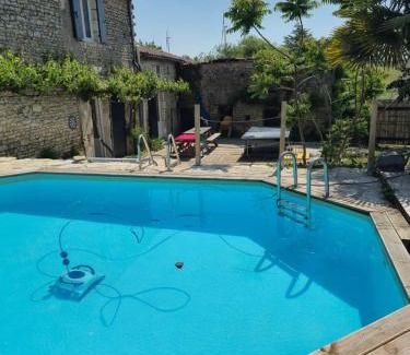 Les chambres du Nid charentais in La Poterie provides accommodations with a garden and a shared lounge. This property offers access to a terrace, table tennis, free private parking, and free Wifi. The country house features an outdoor swimming pool with a fence, as well as a hot tub and a shared kitchen. The country house will provide guests with air-conditioned units with a dishwasher, a coffee machine, a walk-in shower, a hair dryer, a TV with streaming services, and a PS3. Each room has a shared bathroom with a bath and free toiletries. At the country house, each unit has bed linen and towels. There is an on-site coffee shop, and during warmer months you can make use of the barbecue facilities. You can play darts at the country house. The country house has a picnic area where you can spend the day outdoors. Hirondelle Golf Course is 24 miles from Les chambres du Nid charentais. Limoges – Bellegarde Airport is 48 miles from the property.
