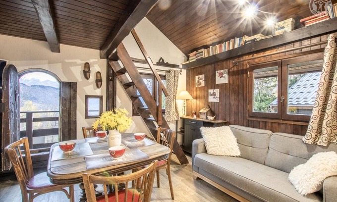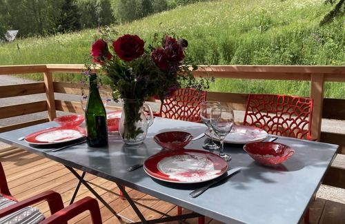 Individual chalet on 2 levels. Ground floor (level access from the car park): living room-kitchen lounge area (combined microwave oven), 1 bedroom (1 double bed 140x190 cm), bathroom (small bathtub with WC). 1st floor: mezzanine under the slope (height less than 1.80m with miller's ladder / 1 double bed 140x190 cm, 1 single bed serving as a bench). Total floor space 33 m² attic parts included. Small single-storey wooden terrace with balcony (access via a low door and over a step). Typical Savoyard attic from the 19th century, located at the foot of the slopes of the Sybelles area by Les Bottières (ski area with 310 km of slopes), in a hamlet nestled in lush greenery and surrounded by trees. Access and departure from the chalet on skis, depending on snow conditions. Free shuttle to the Toussuire resort (7 km). Good comfort. Large terrace of 42 m² naturally shaded following a south-west and north-east orientation with a balcony (plancha and barbecue). Pleasant natural terrain. Restaurant 200 m from the chalet. Sports shop and ski pass checkout at Maison des Bottières.