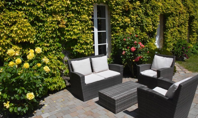 - La clairiere Maison spacieuse rénovée joliment décorée tout confort 12 p 2 sdb 2 wc grand jardin clos, belle terrasse aménagée, parking privatif, ping pong baby foot proche Omaha Beach et Bayeux