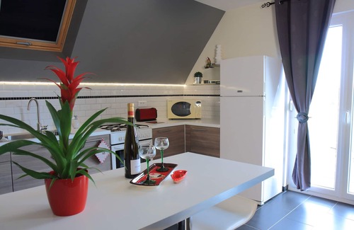 Our Gîte "Les Cigognes" welcomes you all year round. With a capacity of 2 to 4 people, it is located in a quiet residential development, on the first floor of our detached house on which a couple of storks nest each year.