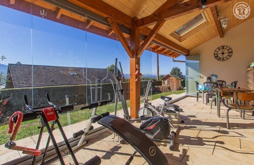 House on 2 levels, gîte in the owner's house with independent entrance, independent and enclosed garden, private parking (2 spaces). Children's games, summer kitchen, pond on the property. 1 step to access the house. On the ground floor: kitchen in the hallway, dining room, outside access to the fully openable veranda (gym / information point / dining area / children's games). On the 1st floor: lounge area on the mezzanine with office, 1 separate toilet, 2 bedrooms (2 single beds 90x190 cm and 1 trundle bed 90x190 cm / 1 double bed 160x200 cm), small baby alcove with changing table and wooden baby bed (60x120 cm), bathroom (shower and toilet). Fully enclosed and landscaped grounds. Wired internet connection. Possibility of table d'hôtes on request. On the heights of Dullin, the Cimes du Lac stand there facing the Montagne de l'Epine and overlook the Lac d'Aiguebelette from where you can admire the view. Perfectly suited for a holiday between lake and mountain, discover the land of the Lac d'Aiguebelette, its lake and mountain activities, its remarkable site and the purity of its waters. Swimming pool shared with the owners, from May to October from 2 p.m. to 8 p.m. (9m x 4m swimming pool unheated but covered in bad weather).