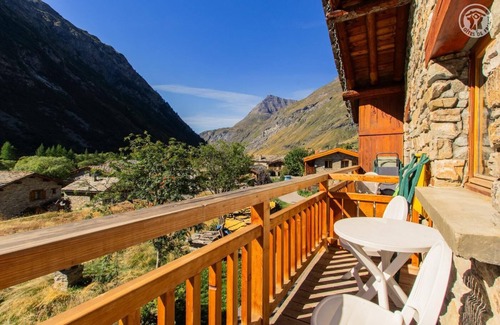 3 gites in the owner's House. Cottage duplex, access by the 1st floor: living kitchenette, flat screen TV + DVD player, common dryer, 2 bedrooms which without outward (1 bed 2 pers. / 1 bed 2 pers.), bathroom (bath), balcony, ground. Internet connection. Ski Bonneval-sur-Arc. Total area of the cottage (62 m²), parties attic included. Beautiful country house typical with bergerie. Sunny South hillside. A side of prairie bordering the old village classified. Good comfort. Warm mountain stamp. Light. Full equipment. Balcony. Pleasant and vast natural outdoor space. Beautiful unobstructed view of the mountains and the village