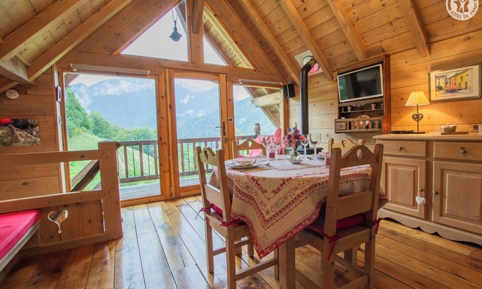 Individual chalet. Ground floor + 1st floor: living room-kitchen lounge area (double shepherd's bed), Wifi connection, 1 bedroom (1 double bed 160x200cm), shower room (walk-in shower). Balcony + terrace + large flowered garden with pond (specific "garden gite" approval). Sheets and household linen included + beds made. Cosmic sauna outside (paying access). The Desert of Entremont 8km, the Granier 16km, the Planolet 29km. Cross-country skiing & snowshoeing 9km. Provision of snowshoes and a sledge. Provide chains to access the chalet if there is heavy snow (sloping road) Chalet "attic" style 8km from the slopes. Hamlet surrounded by nature in the heart of the Chartreuse Natural Park. Superb preserved natural site of meadows & forests. Great comfort. Lots of charm. Warm mountain character. Ultra cozy. Remarkable alpine garden very neat and landscaped. Balcony + terrace facing south. Magnificent panoramic view of the valley and the massif.