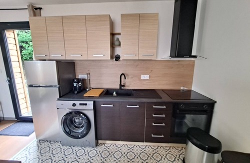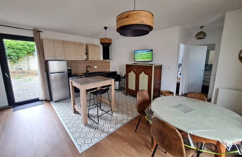 Our accommodation, with 2 main rooms, is managed by a family team. It is made up of a beautiful bedroom (sheets provided) and a living room with lounge area (sofa bed), living room table, flat screen TV, optical fiber. The open kitchen is fully equipped (oven, microwave, hotplates, washing machine, refrigerator, Tassimo coffee machine, kettle, toaster, crockery) and the shower room (towels provided) has a dryer. hair, ironing board and iron.