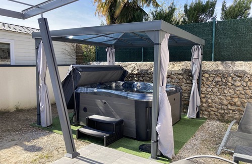 39 m² furnished, fully equipped cottages, Lounge / TV, built-in kitchen, 2 bedrooms (5 places), w. c, bathroom, air-conditioned, internet (Wifi), washing machine, swimming pool of 10.50 / 4 with Jacuzzi and hydro massage jet integrated in a 4/3 range of 40 cm of water, ideal for the little ones and adults, gym with apparatus (bicycle, rower etc ...), charges included except tourist taxes. Deposit (500 €), Cleaning options (35 €)