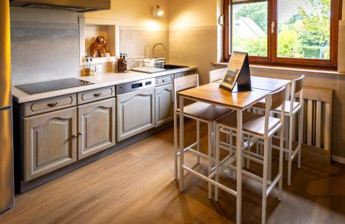 Featuring garden views, LES GRANGES DE JADIS ALSACE Bis in Holtzwihr features accommodations, an indoor pool, and barbecue facilities. There's a private entrance at the apartment for the convenience of those who stay. There's a sun terrace and guests can access free Wifi and free private parking. All units at the apartment complex come with air conditioning, a seating area, a flat-screen TV with satellite channels, a kitchen, a dining area, and a private bathroom with a hair dryer, a shower, and free toiletries. A dishwasher, an oven, and microwave are also available, as well as a coffee machine and a kettle. The rooms are equipped with heating facilities. Fresh pastries, fruit, and juice are available as part of the breakfast offered at the property. A bicycle rental service is available at the apartment. Colmar Expo is 3.4 miles from LES GRANGES DE JADIS ALSACE Bis, while House of the Heads is 5 miles from the property. Strasbourg International Airport is 39 miles away.