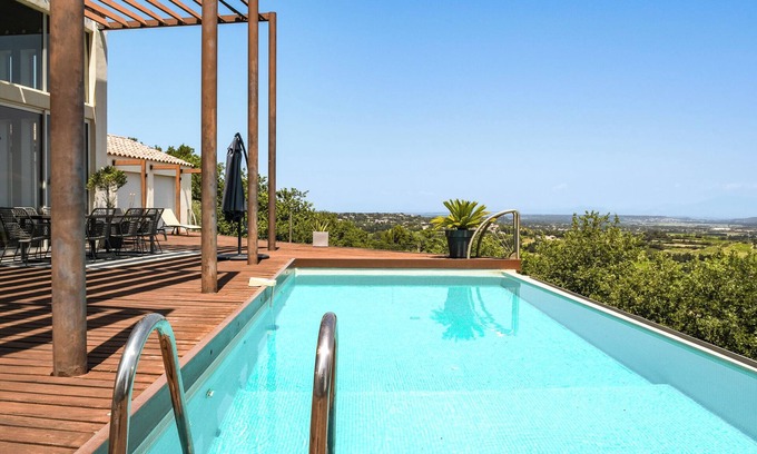 The Villa is composed of 2 wings where the bedrooms are located, on either side of the large living room. Direct access to the large panoramic terrace (180° view of the Alpilles, Mont Ventoux).